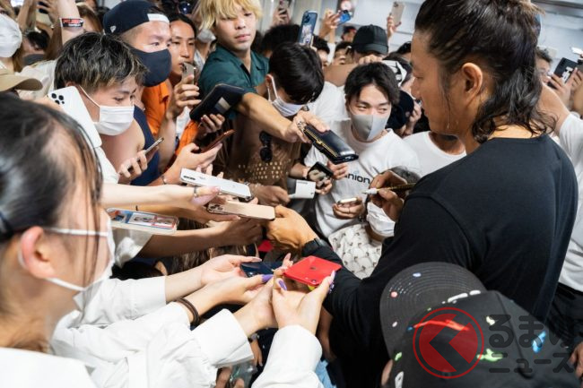 クルマ好きにとってはバイブルのようなハリウッド映画の人気シリーズで、そこに出演している俳優が目の前にいるわけですからファンの熱気と興奮はすさまじいものです。