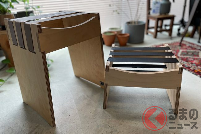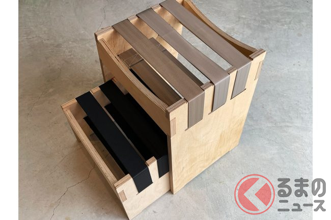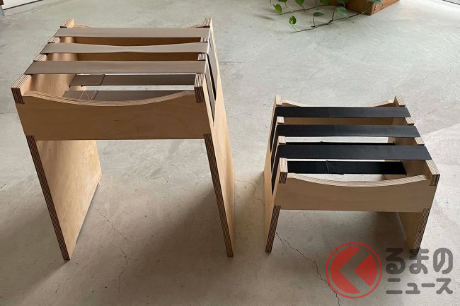 服飾小物・雑貨ブランド「rerer(レレー)」を展開する株式会社ESTは、クルマの廃材を材料とした組み立て式スツール(背もたれやひじ掛けのない1人用の椅子)を開発したと2022年8月17日に発表しました。