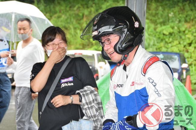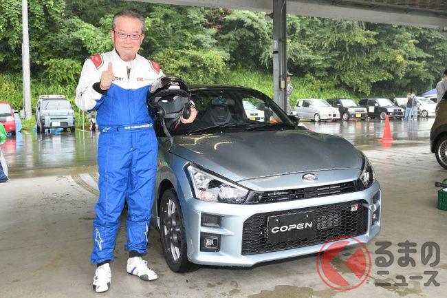 そうしたなか、最新の「コペンGRスポーツ」で参加していたのは、ダイハツ工業代表取締役会長の松林 淳さんです。今回は仕事としてではなく、一般枠のあくまでプライベートな参加者としてお忍びでエントリーしていたとのことで、ほかの参加者に交じって熱い走りを見せていました。