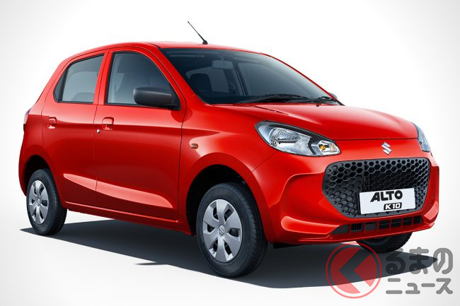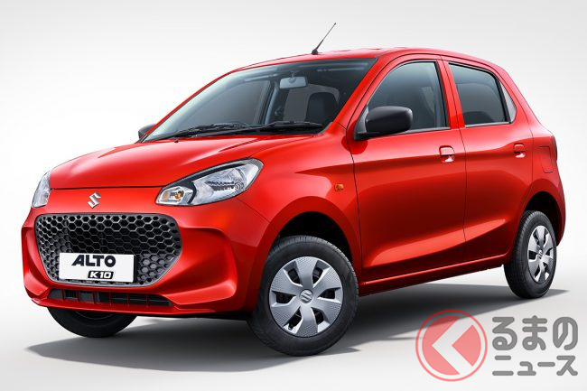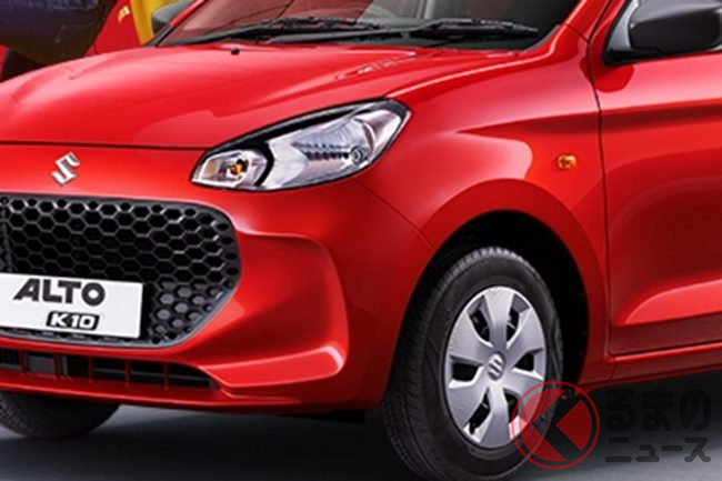 スズキ 新型「アルト K10」を初公開! 軽規格を超えたボディ採用 約68万円から印に投入されるデカ仕様とは?