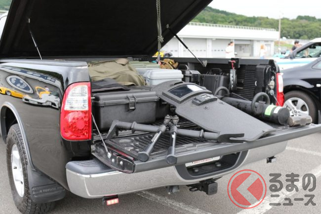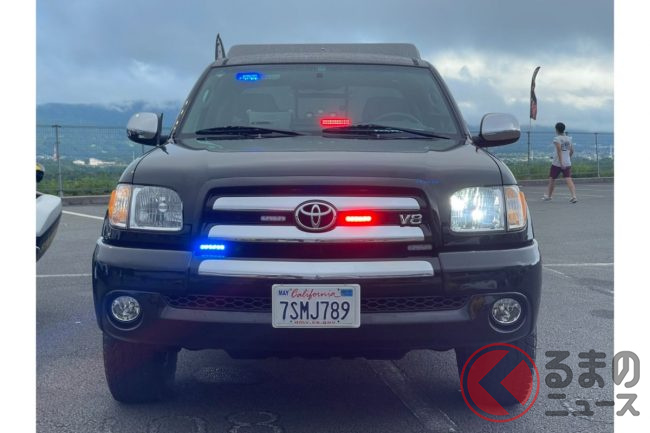 シエナのほかにもトヨタ「タンドラ」の覆面パトカーもいました。このタンドラパトカーは、法執行機関の「U.S.Marshals」で使われているとのこと。治安業務をするわけではないため、ピックアップトラックも採用されるようです。