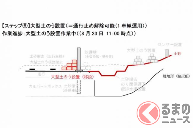 NEXCO中日本金沢支社は2022年8月23日、北陸道下り(金沢・新潟方面)の一部区間通行止めの解除見込みを「8月末頃」から「今週末頃」に前倒ししました。