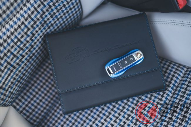 911 サリースペシャルには車体に加え、ポルシェ独自の時計製造施設で精密に設計・製造された「911 サリー スペシャル クロノグラフ」や室内用カーカバー、ワンオフモデルの開発と製造に関する本、デザイナー山下秀一氏による原画などが付随します。