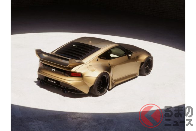 マブしすぎる金ピカボディ! 日産新型「フェアレディZ」にド迫力ワイドボディキット&ウイング装着!「ゴールデンZ」のレンダリングがスゴイ