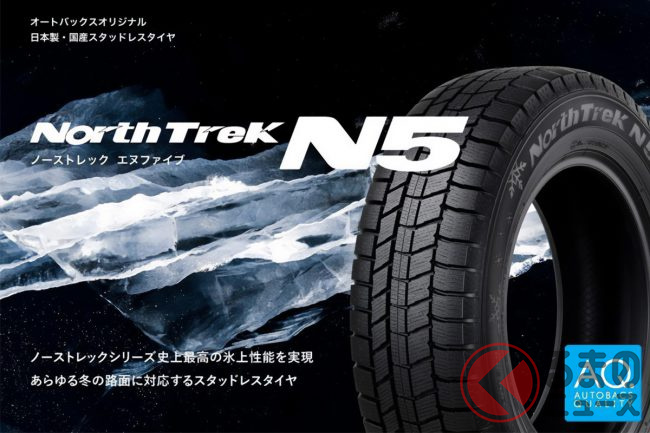 カー用品小売のオートバックスなどを運営するオートバックスセブンは、同社のプライベートブランド「AQ.(オートバックスクオリティ)シリーズ」に新作のスタッドレスタイヤ「North Trek N5」を追加し、2022年9月より全国のオートバックスグループ店舗およびオートバックス公式通販サイトにて、順次販売を開始すると発表しました。