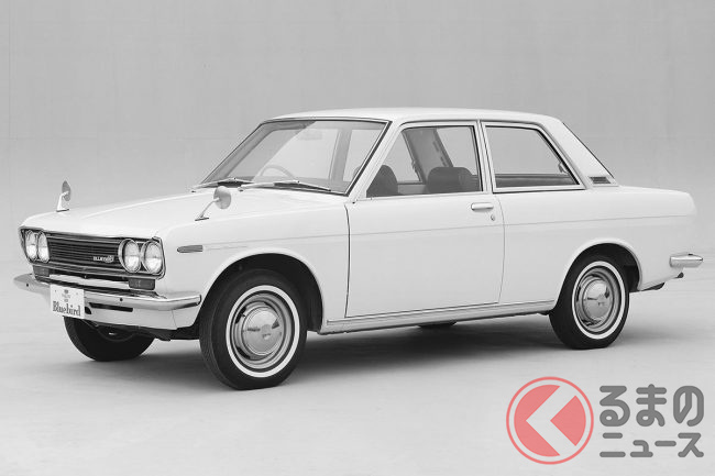 510型の日産3代目ブルーバードは、1967年に登場。当時としては珍しい四輪独立懸架を採用しており、トヨタ「コロナ」とともに「BC戦争」と呼ばれる熾烈な販売競争を繰り広げました。