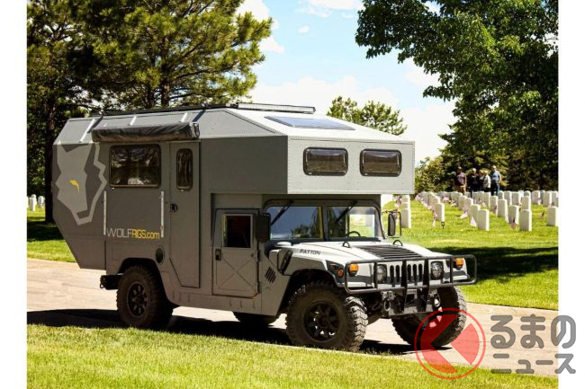 2022年8月27日、アメリカのWolf Rigsが「overland expo」に出展した様子を収めた動画を同社の公式SNSに投稿、その中で、ハマー「H1」をキャンピングカーに変えた「Patton」を公開しました。どのようなクルマなのでしょうか。