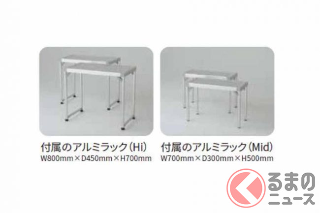 商品の陳列に便利なアルミ製ラックやスライド式パーテーションウォール、専用の固定具などもセットで貸し出します。小物や衣料品、野菜・菓子・生花などの物販を想定しています。