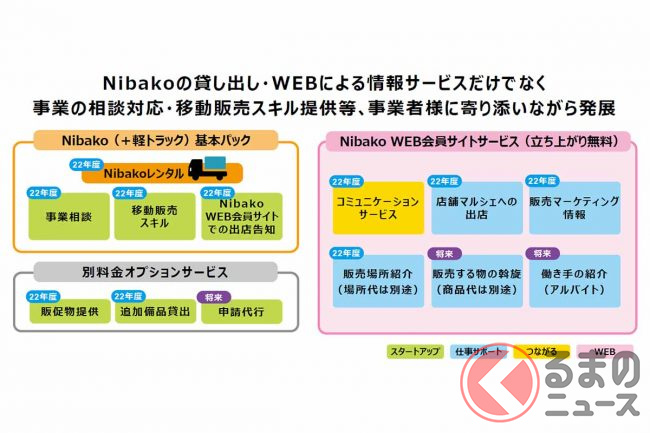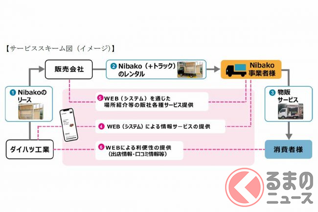 ダイハツは2022年9月6日、軽トラックを用いて小売業者の移動販売参入を支援する新サービス「Nibako(ニバコ)」を開始しました。