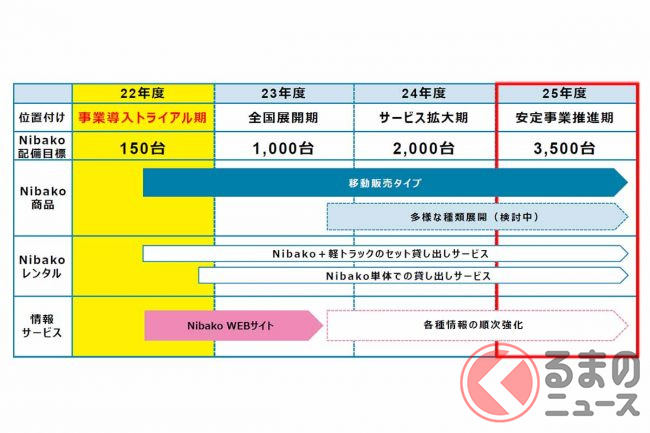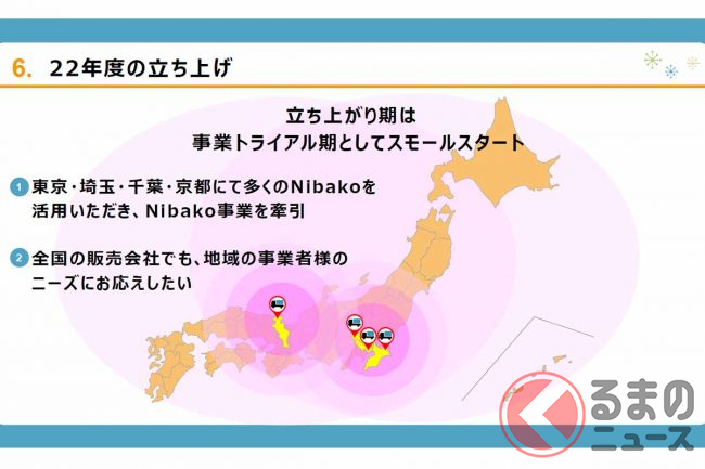 2022年度は「事業導入トライアル期」とし、東京・埼玉・千葉・京都の4都府県で、計150台を目標にスタート。2023年度は1000台、2024年度は2000台、2025年度は3500台に増やしていくことを目標にしています。