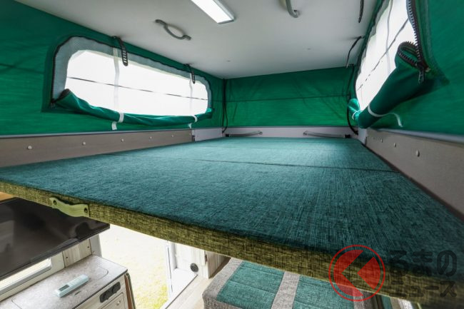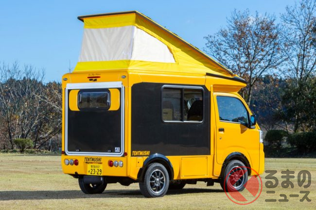 タフ顔だけど可愛い? 大人でも車中泊余裕な軽キャンパー「テントむし」 どんな仕様?