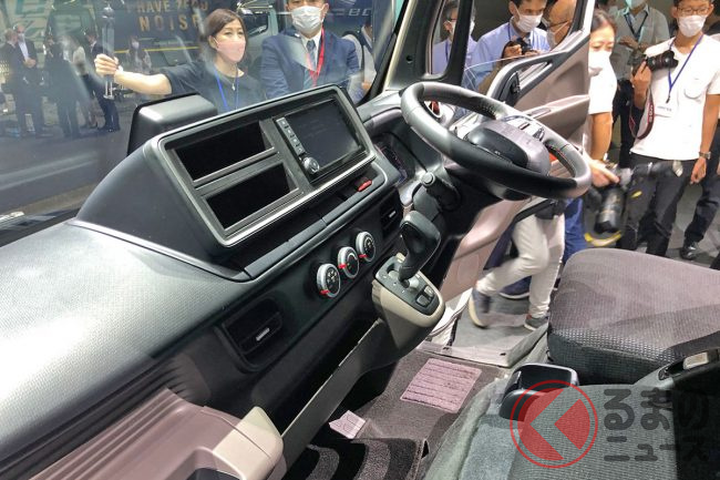 国内では5トンクラスから8トンクラスまで対応できますし、動力取り出し装置「ePTO(Electric Power Take Off)」を装備したことで冷蔵車やごみ収集車、ダンプといった特装車の対応も可能となり、ユーザーはさまざまなオーダーメイドができるといいます。
