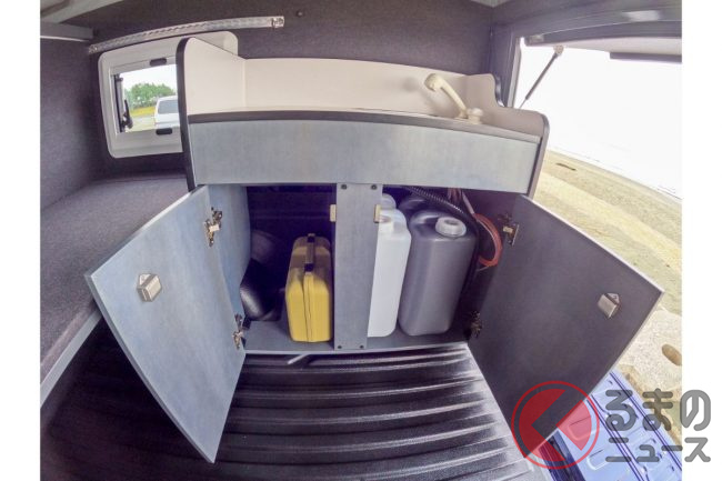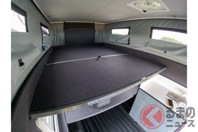 ベース車の荷台部分にキャンピング部分をハイブリッドしたような、HDSシステム(ハイブリッドデッキシステム)となっているため、重量も軽くなり、積載容量も増加しています。