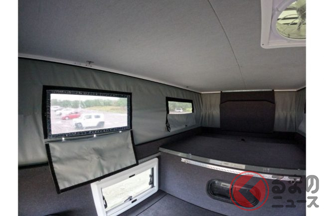 しかしFT PORTERは、ポップアップルーフとなっており、天井が上に開くことによって車内スペースを拡張し、荷物を積載しながら就寝スペースを作ることが可能です。