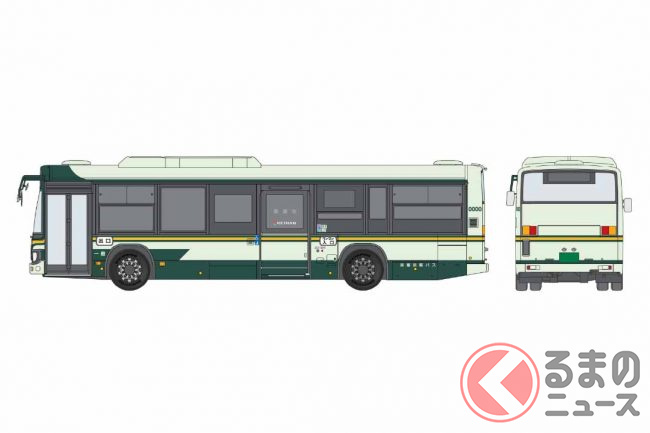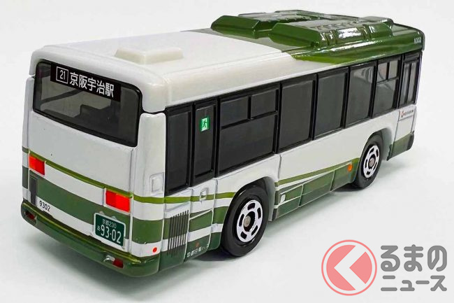 京都の宇治エリアで活躍する緑の3本線が入ったバス車両を製品化。