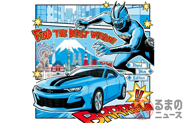 マンガに出てきそうな青い「野獣」! アメリカンスポーツカー「カマロ」の限定車が日本らしさ全開のコラボで登場!
