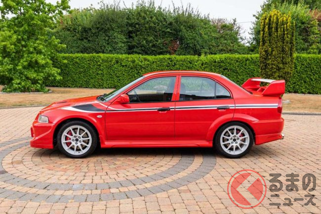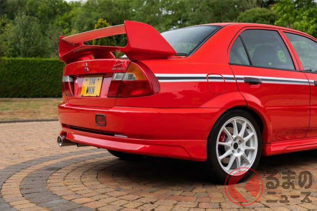 コレクティングカーズは、アイルランドやイギリス、ドイツなど世界中のクルマを競売にかけるオークショニア。同サイトで2022年9月に2001年式三菱「ランサーエボリューションVI」が出品され7万3500ポンド(日本円換算で約1225万円)で落札されました。
