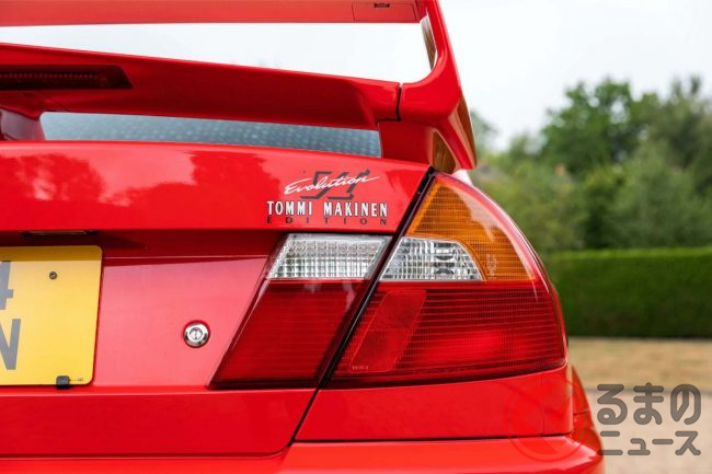 今回落札されたランサーエボリューションVI トミー・マキネン エディションはイギリスで販売された250台のうちの1台。外装色はパッションレッドとなっており、この外装色の個体は250台のうち50台しかないそうです。