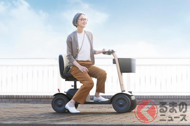 今回登場したモデルSは「ハンドル型電動くるまいす」という規格に沿った設計で、スズキの「セニアカー」などに近い着座姿勢でハンドルを両手で持つタイプのモビリティです。