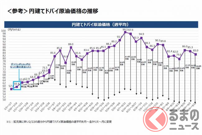 レギュラー再び170円突破! ガソリン2週連続値上がりで平均170.1円 補助金は延長