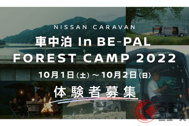 スペシャルサイトから応募すると抽選で2組4名が、10月1日から2日にPICA八ヶ岳明野(山梨県北杜市)で開催されるキャンプフェス「BE-PAL FOREST CAMP2022」にて、純正の車中泊仕様車「キャラバン マルチベッド」での宿泊ができるイベントにエントリーできます。