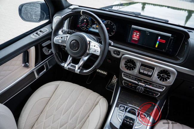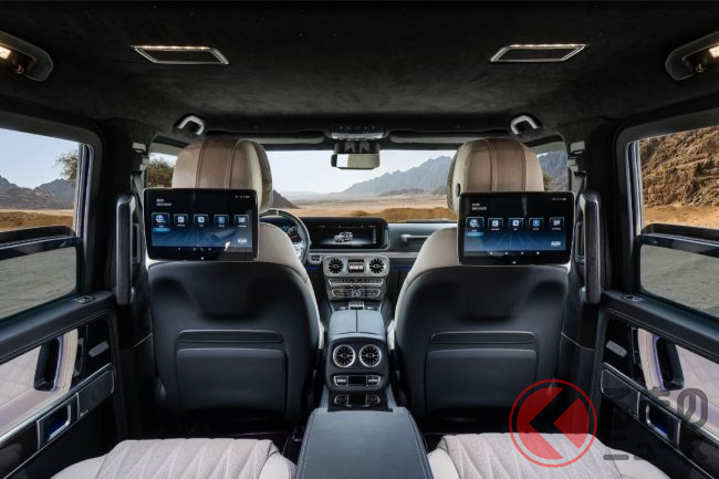 乗車定員は4名、通常のGクラスと違い2列目の左右シートを独立化し、中央に大型センターコンソールを配置したキャプテンシート仕様になっています。外装色はブラック、内装はホワイトです。