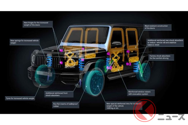 ベンツ「Gクラス」に豪華装甲仕様!? 並みの「弾丸」は通さない! 世界のVIPがうらやむ本格オフローダー「バンカー」がスゴすぎた
