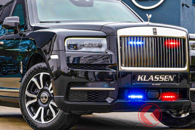 エクステリアには、通常のカリナンと比較して「BUNKER」や「KLASSEN」のロゴが追加されているほか、パトカーのようなフラッシャーが追加されています。