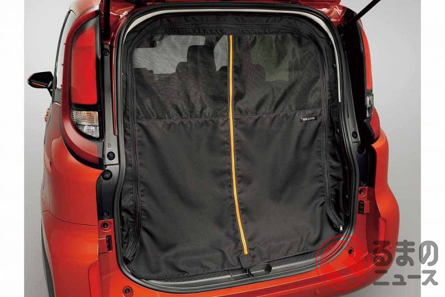 また、バックドアの開口部に取り付け可能な「バックドアネット」は、エアコンを作動させずに車内の風通しを良くしたいときなどに使えるアイテム。荷室の日よけとしてキャンプや釣りなど、アウトドアレジャーで活躍します。