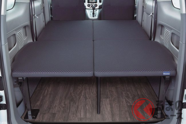 平らな車内で「車中泊が可能」ということをアピールする新型車も増えるなか、日産車のカスタマイズや架装手掛ける日産モータースポーツ&カスタマイズ株式会社は、車内で寝ることを前提にした「マルチベッド」という仕様を複数のモデルに設定しています。