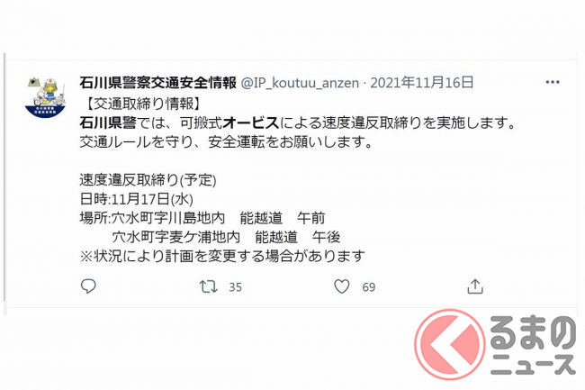 道路をクルマで走っていると、警察が速度違反の取締りをしていることがあります。