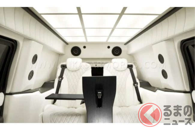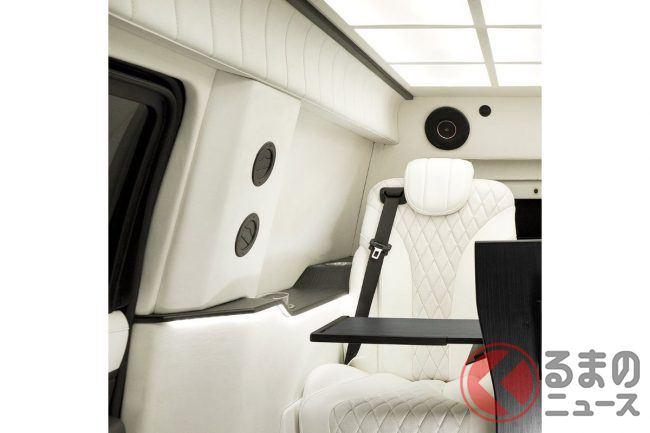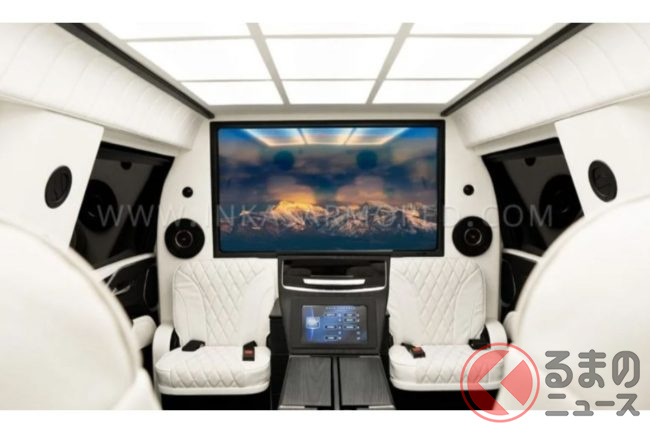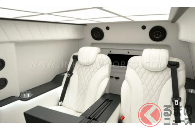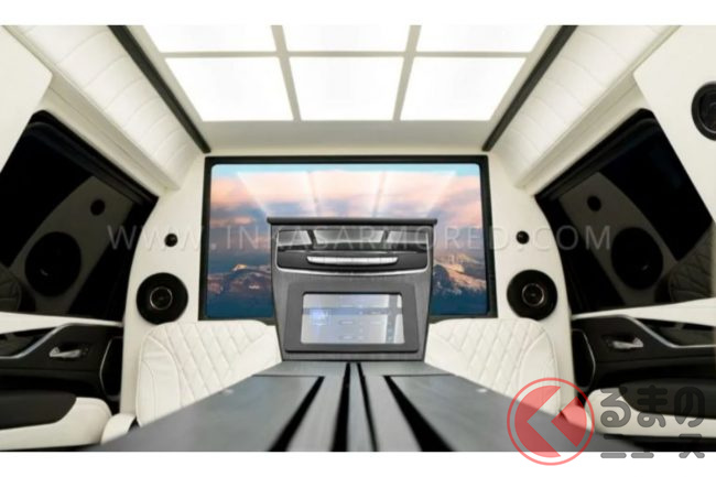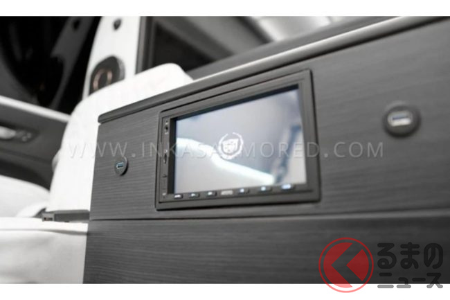 今回INKASがキャデラックをベースに改造を施した「アーマード キャデラック・エスカレード“チェアマン”VIPエディション」のボディサイズは、全長5766mmx全幅2060mmx全高2068mm。通常のエスカレードと比較してキャビンの高さが5インチ(約127mm)高くなっており、広々とした室内空間を実現。広くなった後部キャビンは、温度調節やマッサージシステムを内蔵したキャプテンシートや自然光を模した革新的な天井のライティング、電動折りたたみテーブルやジャンプシートなどが装備されており、豪華な応接室のような内装になっています。