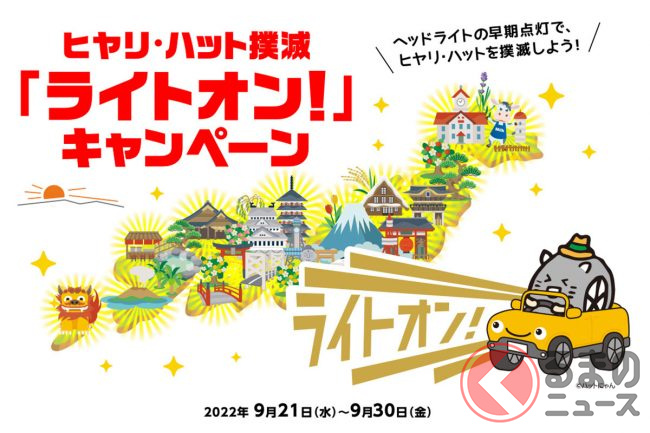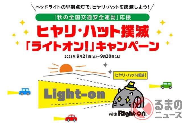 ヒヤリ・ハット撲滅「ライトオン!」キャンペーン(以下ライトオンキャンペーン)は交通事故につながるヒヤリ・ハットを防止するために始めたキャンペーンです。