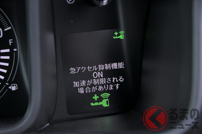 しかし急アクセル抑制機能は、前進または後退時に急激にアクセルが踏み込まれると車両が「誤操作」と判定し、警告音とメーターに注意喚起のメッセージが出るほか、エンジン回転数を抑制(クリープほどの速度となる)。暴走による事故を防ぎます。