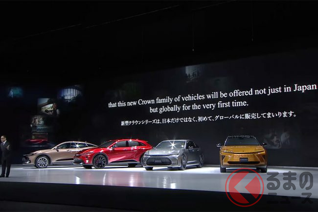先行発売された新型クラウン クロスオーバーのほか、ミディアムスポーツSUV「クラウン スポーツ」、ラージセダンの「クラウン セダン」、ラージSUV「クラウン エステート」と、合わせて4つのモデルからなっています。