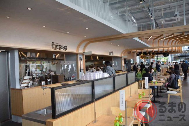 かつて川口PAにあった食堂や売店などの商業施設は、公園側に移転し、店舗の面積や座席数もそれぞれ約2倍に拡充。