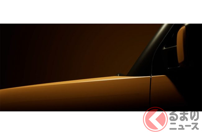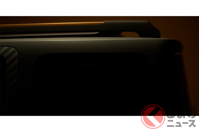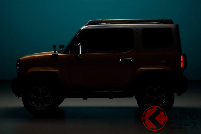 まるでスズキの軽クロカン「ジムニー」を思わせるようなシルエットのSUVをチラ見せしています。