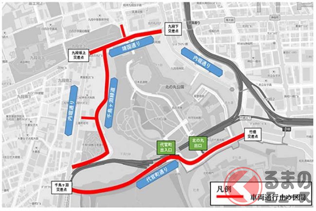 代官町通りが通行止めになるため、首都高都心環状線の代官町出入口と北の丸出口も利用できません。
