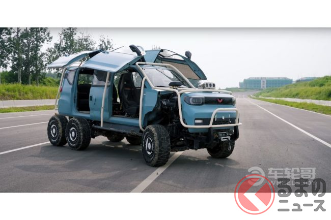 中国の自動車を扱うユーチューバーのWheelsboyは、YiChe Garageが作成した五菱「宏光MINI EV」の6輪仕様車についての動画を投稿しました。宏光MINI EVといえば中国で最も売れたEVとして有名ですが、どのようなクルマなのでしょうか。