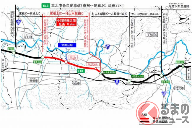 これにより東北中央道は、福島市から山形市を経て新庄市までが1本につながります。