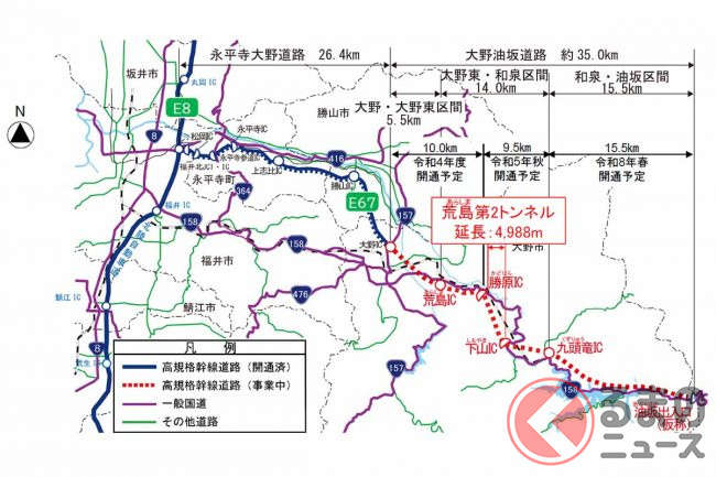 大野油坂道路の「最長トンネル」いよいよ貫通! 東京・名古屋~福井の最短ルートとなる中部縦貫道計画とは