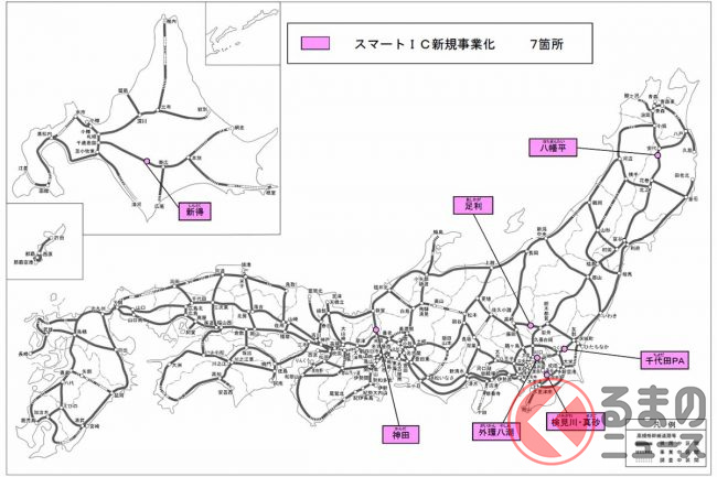 国土交通省道路局は2022年9月30日、全国の高速道路に整備する7か所のスマートICについて、各高速道路会社に事業許可を行ったと発表しました。