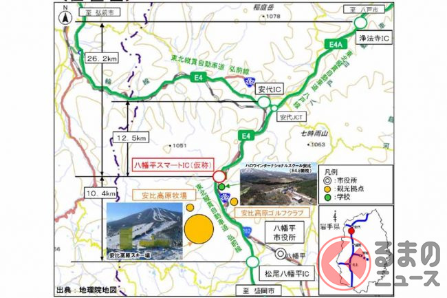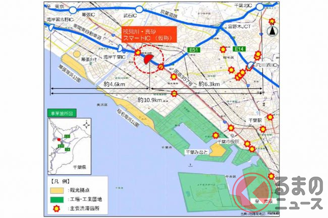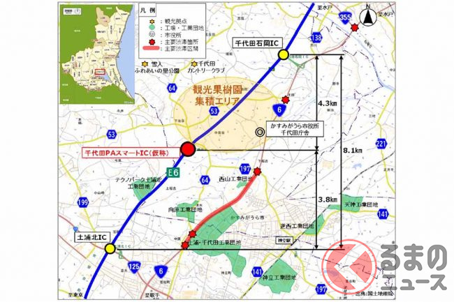 八幡平、足利、検見川・真砂は本線直結型、千代田PA、外環八潮、神田はSA・PA接続型として整備される計画です。
