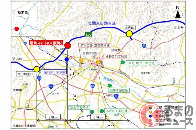 ・足利:栃木県足利市、北関東道の太田桐生IC~足利IC間