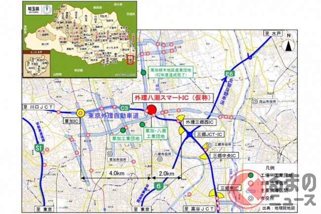 ・外環八潮:埼玉県八潮市、外環道の草加IC~外環三郷西IC間