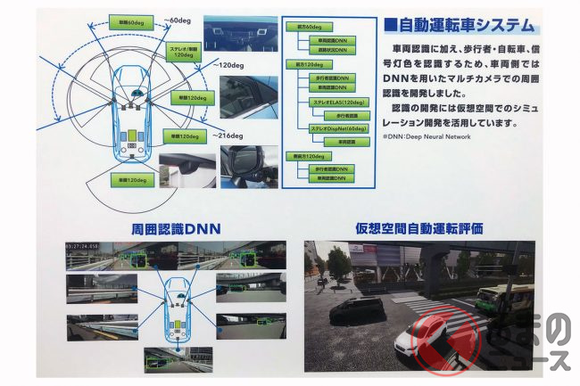 スバルもSIPに参加していて、例えばお台場で実施中の信号機の情報(信号機の色と、色が変わるまでの時間)をクルマに送信するシステムと、車載カメラで信号機の色を把握するシステムとの違いを検証する実証などを行っていたといいます。