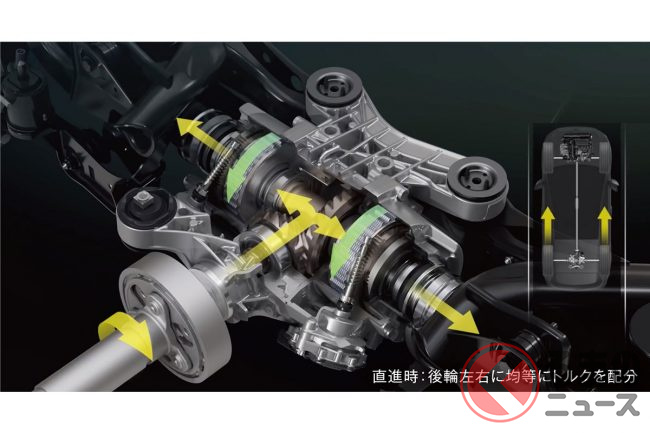 Rパフォーマンストルクベクタリングは、電子制御デフ「XDS」とオプションの「アダプティブシャシーコントロール」を統合した制御をつかさどる「ビークル ダイナミクス マネージャー」との組み合わせにより、機敏なハンドリングと高速域での荷重変化を最適化しドライビングダイナミクスを高めています。