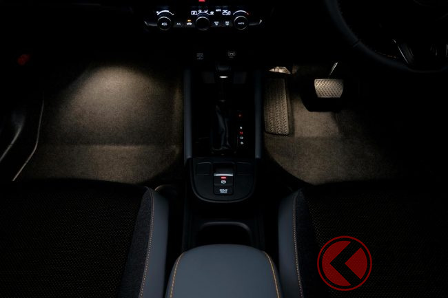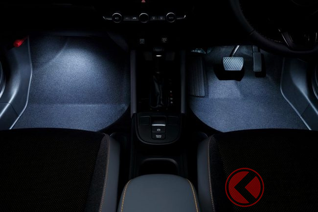 また、ドア開閉時に「FIT」のロゴが足元を照らす「パターンプロジェクター」や、キャンドルホワイト/ブルーから選べる「フットライト」などのイルミネーションアイテムが、上質で華やかなイメージを演出します。