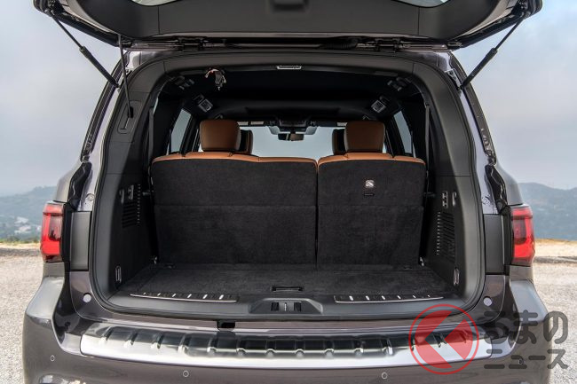 QX80は大胆なプロポーションと威風堂々としたデザインのほか、その特徴のひとつとして、圧倒的な広さがあげられます。