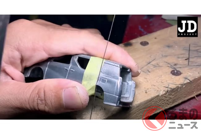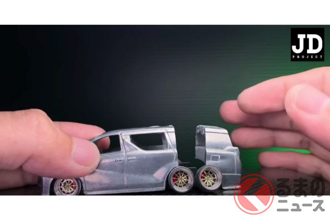 そんなJDPが2022年9月に公開した動画では、トミカ製のトヨタ「アルファード」ミニカーを6輪車仕様に改造しました。